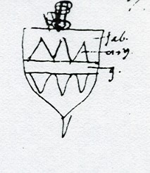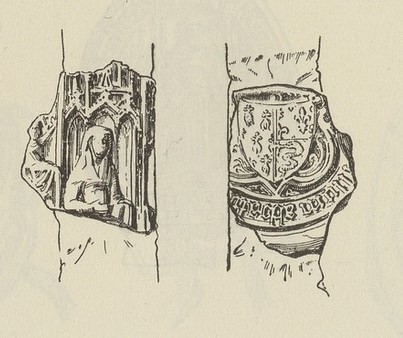 Armes de Guillaume de Bailleul, prieur de St-Jean de l’Habit (1446), « les armes de ce prieur sont aux vitres à gauche en entrant dans l’église de l’Habit de fontevraud« , B.N. latin 5480, p. 522.