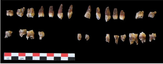 « Les restes osseux retrouvés dans le cercueil sont peu nombreux. Toutefois, alors que la plupart des restes osseux ont subi d’importantes détériorations, deux fragments de pariétal ainsi qu’une diaphyse tibiale gauche et un fragment de fibula présentent une surface lisse et régulière. Le crâne est la partie la mieux représentée du squelette. L’os frontal est complet à l’exception de la partie postérieure du toit des orbites. Un total de 26 dents a été retrouvé dans le cercueil. Elles présentent pour la plupart des fissurations, voire des éclatements de l’émail, ainsi que des cassures fraîches au niveau de la racine». [76].