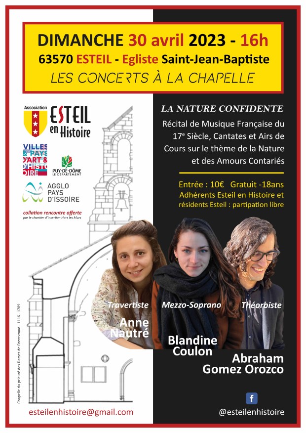 Les Concerts à la Chapelle d’Esteil s’offrent comme une formidable opportunité de sortie au grand air sur notre merveilleux belvédère du Livradois, en famille, entre amis et voisins les dimanches après-midi. Pour une heure de promenade ou rando autour de notre volcan (-20 millions d’années), un pique-nique tiré du sac campé face aux nombreux points de vue remarquables, suivi dans l’émotion et l’enchantement musical des Concerts à la Chapelle, au sein de l’héritage patrimonial millénaire de notre village, la chapelle prieurale d’Esteil XIIe. Plaisirs et émotions prolongés autour d’un buffet d’après concert offert, pour des échanges, des rencontres, entre le public en présence des artistes.