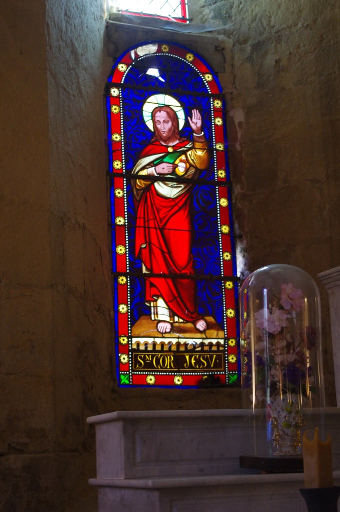 En 1994 : installation d’un vitrail en remplacement de la fenêtre à gauche de l’autel