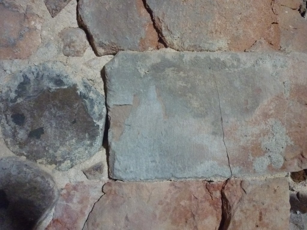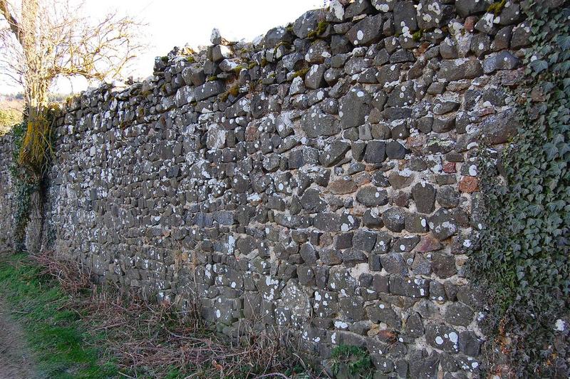 « La maçonnerie des murs gouttereaux, typiquement auvergnate, est composée d’un « damier de blocs de basalte disposés en lignes horizontales et assemblées à gros joints de « mortier. Nous trouvons ici un type d’appareil alvéolé, assez commun à cette région ». (photo)