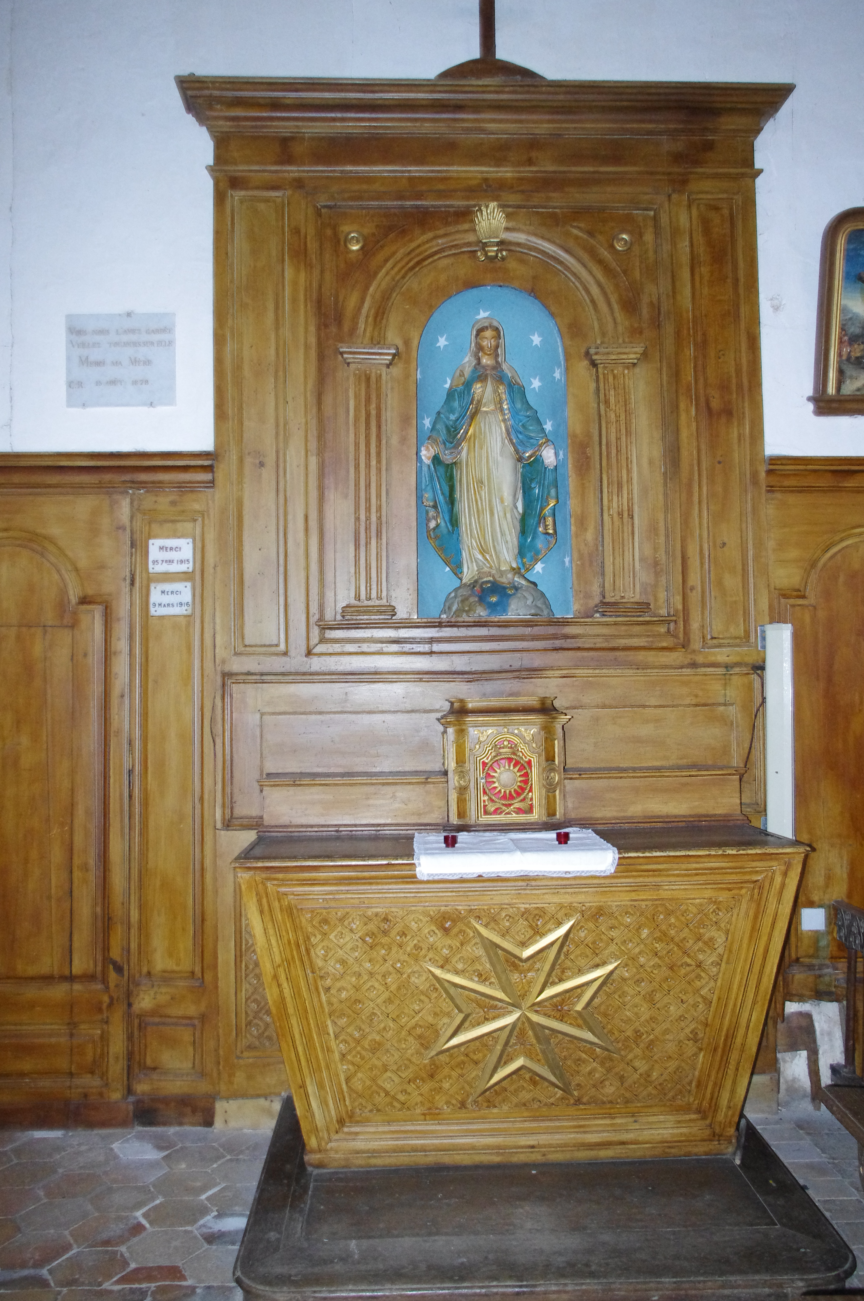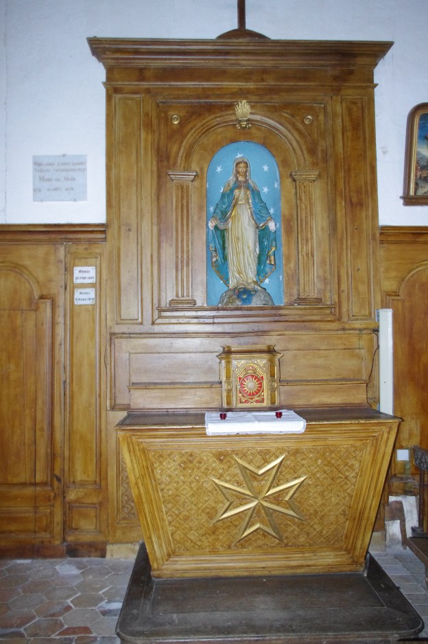 retable Marie ← Précédent Autel de la Vierge, église Saint-Jean de Belhomert, Eure-et-Loir. Photo JGE 2020