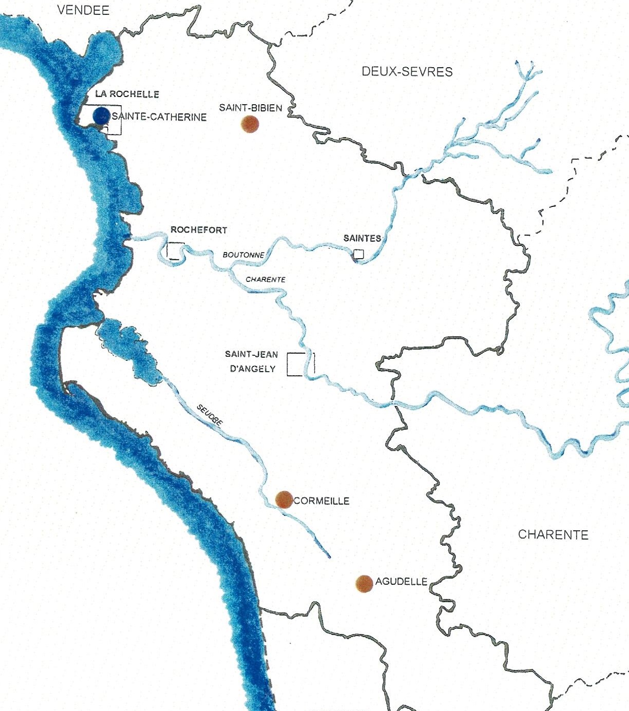 Le littoral aunisien prend son essor à partir du XIe siècle avec le commerce du sel et, plus encore à partir du XIIe siècle avec la création puis l’expansion du port de La Rochelle, dont les exportations de vins contribuent à insérer l’Aunis et la Saintonge dans le commerce international[4].(carte Tranchant)