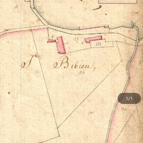 Saint-Bibien est fondé vers 1140[5]. Saint-Bibien est situé près du ruisseau du même nom (voir plan cadastral napoléonien)
