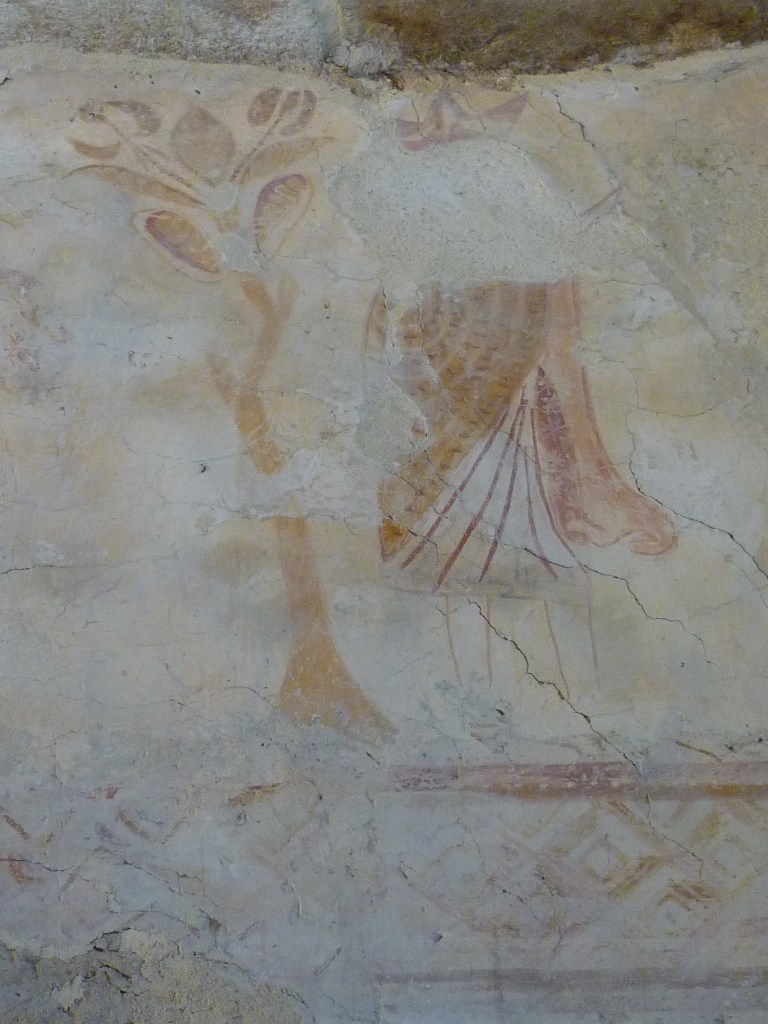 Elle est en bonne état de conservation. Elle s’organise autour d’un plan simple: la nef, rectangulaire et de dimensions modestes ne présente pas de bas-côtés. La construction est elle-même rustique et l’intérêt principal de l’édifice réside dans la présence de fragments de peintures murales[32]. Il s’agit d’enduits peints.