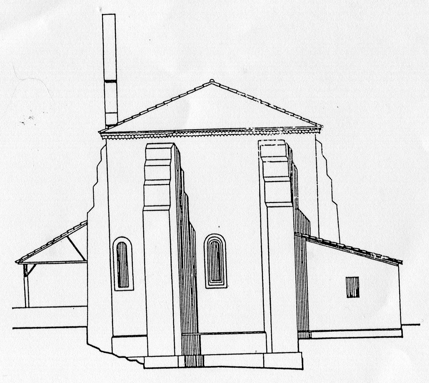 L’église fontevriste de Vopillon, Gers. Dessin de J.M.Lassure