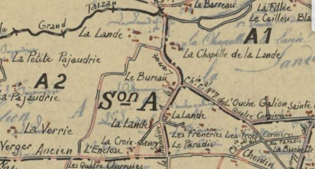 Première moitié du XIIe siècle : Acte concernant l’achat à Botinard, fils de Renoul, par Geoffroi, prieur du prieuré de La Lande-en-Beauchêne, d’un marais, d’un carré de vigne, d’un cens de douze deniers et treize soudées de terre[12].