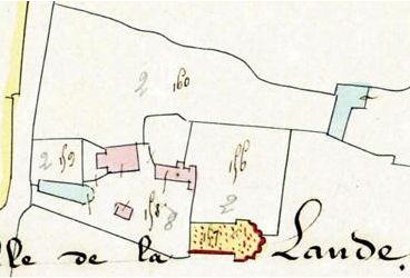 En 1873, le domaine de La Lande est décrit : « … sa vaste chapelle apparaît encore tout entière par son plan imprimé sur le terrain. Le chœur en était spacieux ; du côté de l’Est on remarque l’emplacement d’un autel et d’une porte conduisant au monastère converti actuellement en jardin où la charrue exhume encore quelquefois du sol des carreaux, des briques et des ardoises, mettant à nu les dimensions des appartements… Le chœur de l’édifice se trouve aujourd’hui sous un hangar destiné à abriter les charrettes. En 1873, on y a trouvé plusieurs pierres tombales dont le temps a dévoré les inscriptions… »[51]. Les dernières traces de l’église disparaissent en 1880[52].