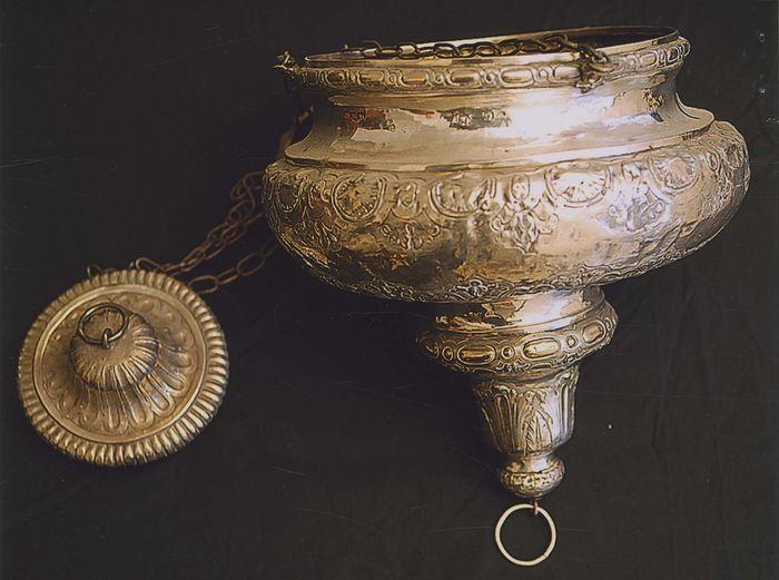 Historique : des personnes pieuses ont caché chez elles, des vases, des ornements sacrés pour les préserver : Mme Faverou a emporté la lampe d’argent massif qui est actuellement suspendue à l’entrée du chœur de l’église Saint-Jean-Baptiste de Montaigu[50].